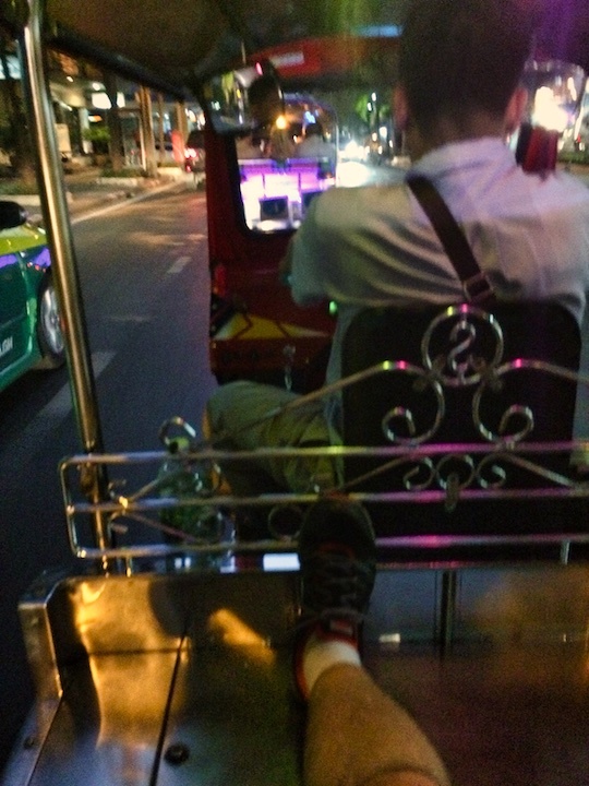 A cidade como cidade não me surpreendeu não, um aeroporto gigantesco, andei quase uma hora do avião ao posto policial para verificação dos documentos, depois meu translado levou outra hora para chegar ao hotel, o caminho incluiu trânsito, muitos viadutos e muito barulho de buzina, mas como sempre cheguei ao hotel num estado de agitação bem fora do normal, mesmo o roteiro prevendo descanso para essa primeira noite, não rolou, me informei um pouco sobre onde ir, troquei dinheiro, arranjei um chip local pro celular, e pronto, tudo funcionando, cerca de 2 horas depois de ter chegado ao hotel já estava eu no trânsito novamente, agora a bordo de um TUK-TUK, novidade pra mim, um triciclo coberto, sem cinto de segurança, portas ou vidros, o motorista andava em uma velocidade que não tornava fácil se segurar no banco de traz, foi muito divertido.