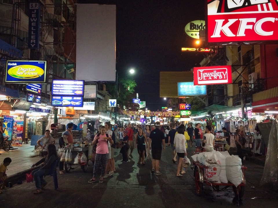 O destino era uma rua turística, um calçadão, onde se encontrava de tudo e todo tipo de gente, muita luz nos luminosos, entretenimento para todos os gostos, de feirinhas com artesanato local a escorpiões torrados a venda no meio da rua (não, não tive coragem de comer isso), casas de tatuagem tradicional feita com bamboo, massagem e prostituição que não passavam a menor credibilidade, a maior mistura de idioma que já vi em um lugar só, a cada passo se ouvia um diferente, e eu fiquei meio extasiado no meio de tudo isso repensando o significado de cosmopolita, tudo era novo, tudo era interessante.