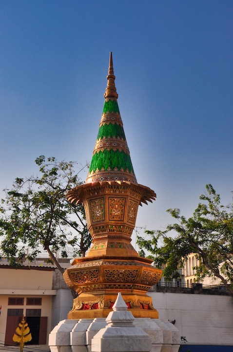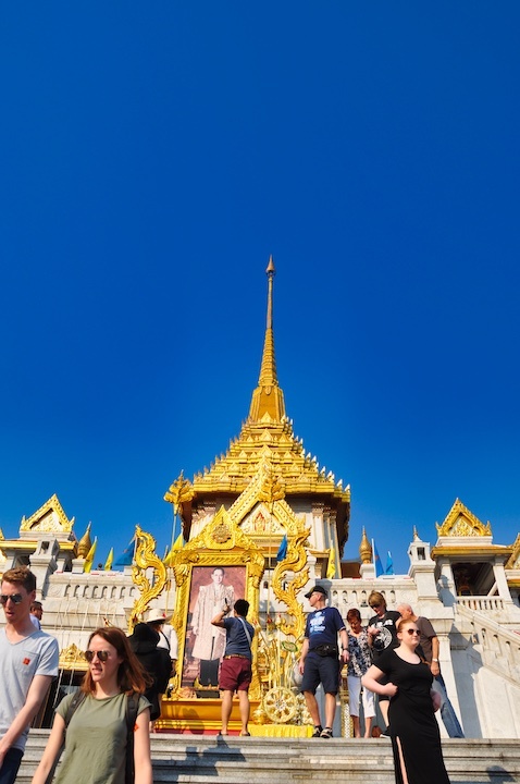 De fora dos muros do palácio já se observam as diversas pontas tão características da região, já chama a atenção, na entrada já se percebe outra característica da Ásia, gente e mais gente, milhares por todo lado que olhe, mas é dentro dos muros que se percebe os detalhes, e haja detalhe, cada parede é desenhada exaustivamente, cada escultura repleta de precisão e criatividade, muita cor, muito ouro, muitos estilos misturados meio que desorganizadamente, ocupando cada espaço visível, esculturas que variam de poucos centímetros a dezenas de metros, e templos ao lado de outros templos, um caos! Mas não uma zona, nem as milhares de pessoas incomodavam, de certa forma todos se respeitam, todos tiram suas fotos e tem seus momentos de êxtase em algum ponto do palácio, tenho convicção todos saem de lá convencidos de ter conhecido um lugar especial.